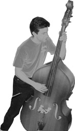 | Mike Perkins, bass. Mike grew up in Los Angeles, earning money in recording sessions and playing in a disco band by the time he was in junior high school. He learned his jazz chords from LA session guitarist Howard Roberts and sitting in with various pickup bands in LA clubs. His father is a jazz drummer in Los Angeles. |